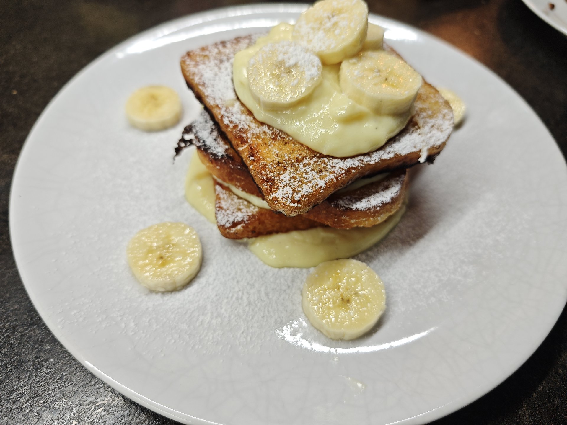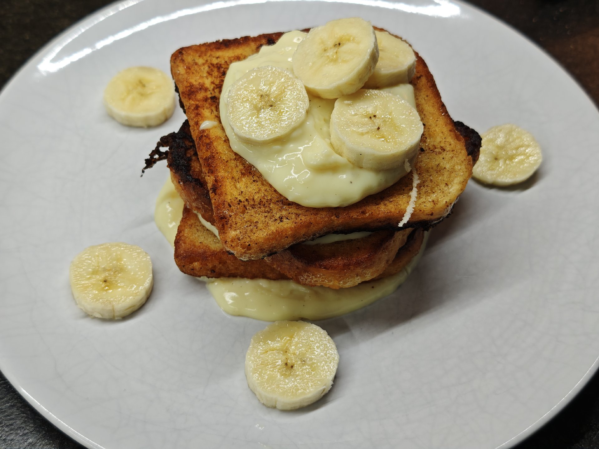 Na první krajíc chleba rozetřeme trošku pudinku a na něj položíme druhý krajíc chleba.